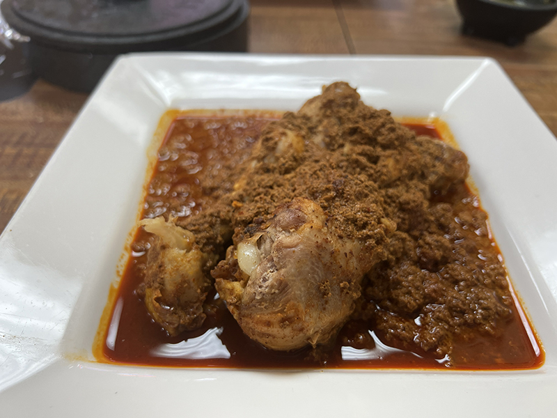 Homi, Pollo en Pipian Rojo, closer Published August 29, 2023, 8:20 at 800 × 600 in Homi, August 2023 (St. Paul, MN) ← Previous Next →