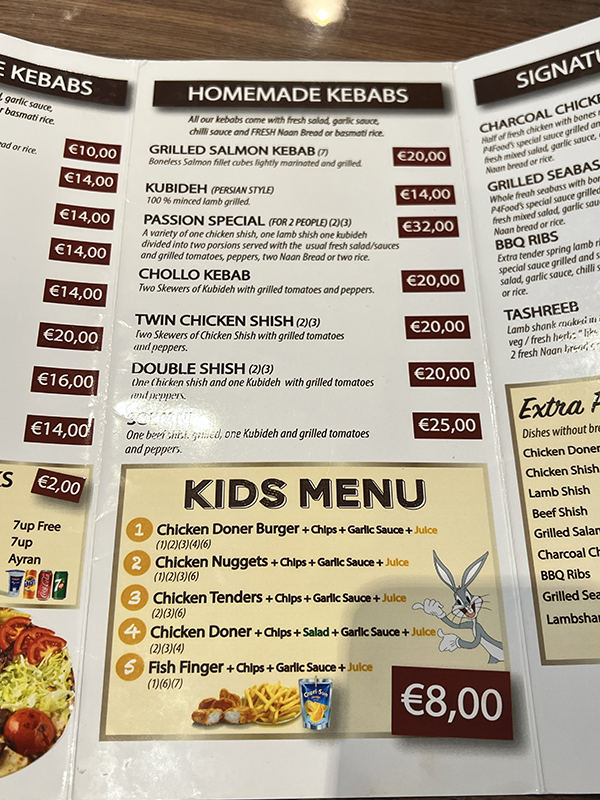 Passion 4 Food, Menu, Homemade Kebabs, Kids Menu Published September 4, 2023, 10:54 at 600 × 800 in Passion 4 Food, Twice (Dublin, Summer 2023) ← Previous Next →