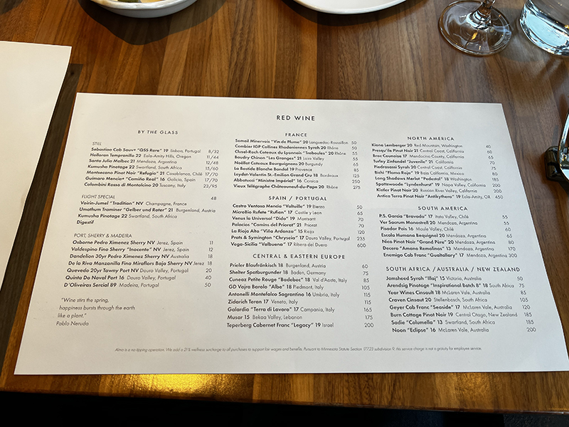 Alma, Menu, Red Wine Published September 18, 2023, 19:45 at 800 × 600 in Restaurant Alma VIII, Fall 2023 (Minneapolis) ← Previous Next →