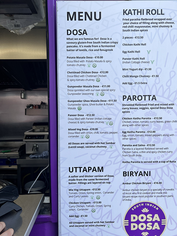 Dosa Dosa, Menu 1 Published September 23, 2023, 9:53 at 600 × 800 in Dosa Dosa (Dublin, Summer 2023) ← Previous Next →