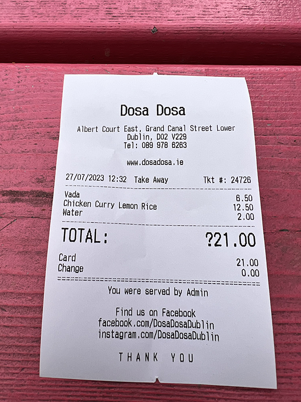 Dosa Dosa, Second visit Published September 23, 2023, 9:53 at 600 × 800 in Dosa Dosa (Dublin, Summer 2023) ← Previous Next →