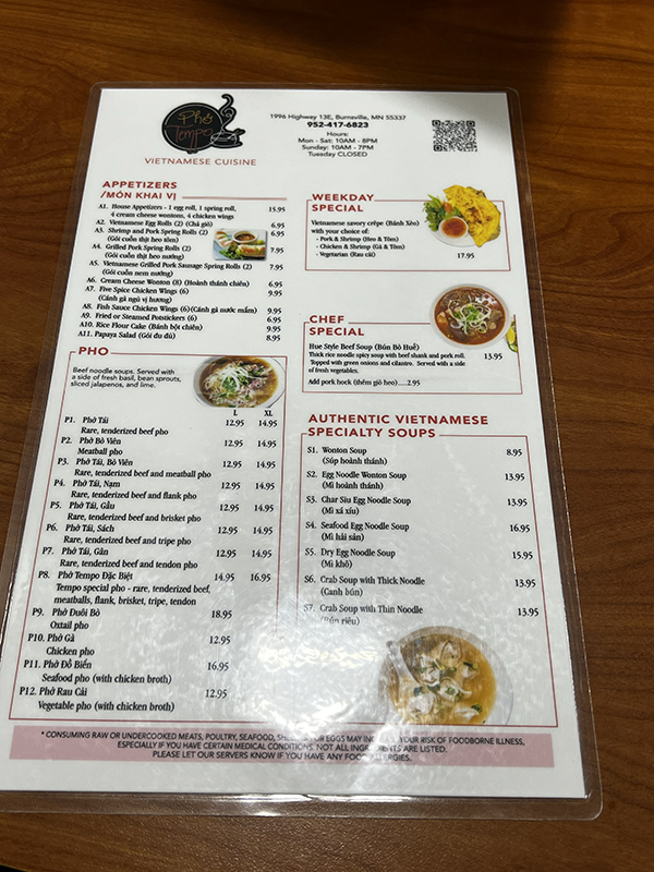 Pho Tempo, Menu Published October 3, 2023, 19:46 at 600 × 800 in Pho Tempo II (Burnsville, MN) ← Previous Next →