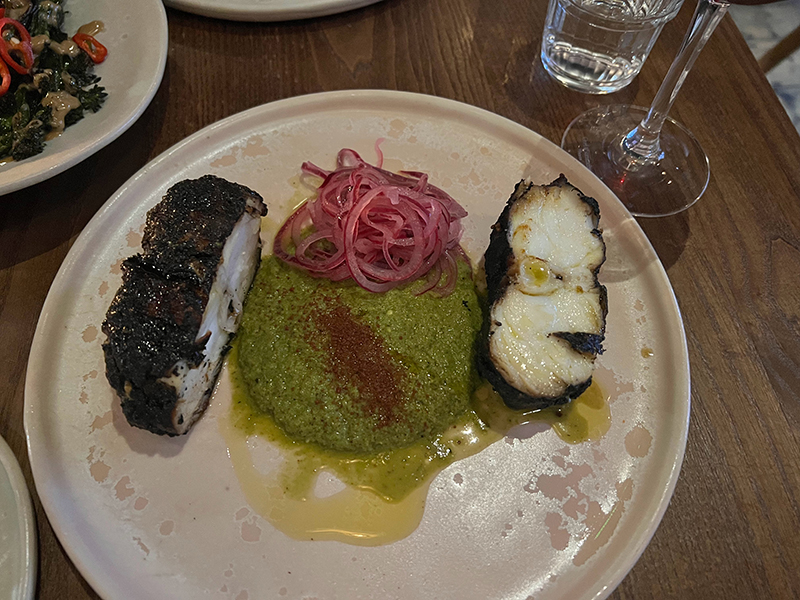 Mister S, Blackened Monkfish, Green Mole, Pickled Chilli Published October 12, 2023, 10:46 at 800 × 600 in Mister S (Dublin, July 2022, August 2023) ← Previous Next →
