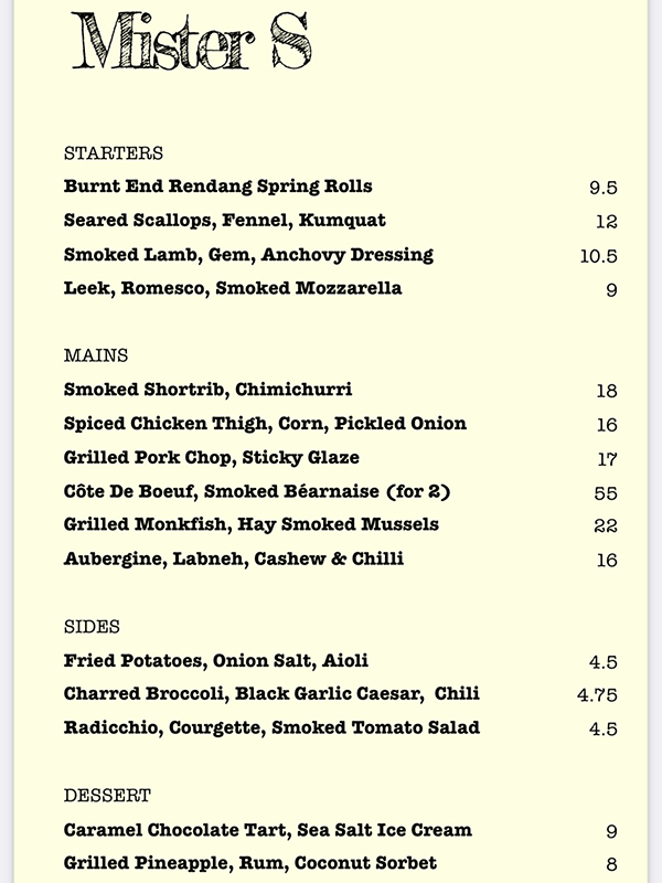 Mister S, July 2022, Menu 1 Published October 12, 2023, 10:47 at 600 × 800 in Mister S (Dublin, July 2022, August 2023) ← Previous Next →