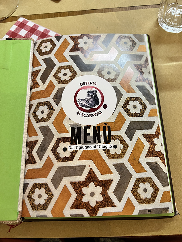 Osteria Ai Scarponi, Menu, June 7-July 17, 2023 Published October 22, 2023, 10:09 at 600 × 800 in Osteria Ai Scarponi (Padua, July 2023) ← Previous Next →