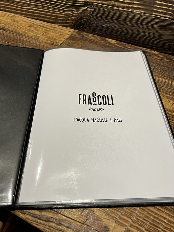 Frascoli, Menu, Frascoli, Bacaro Published October 29, 2023, 11:00 at 600 × 800 in Cicchetti at Frascoli (Padua, July 2023) ← Previous Next →