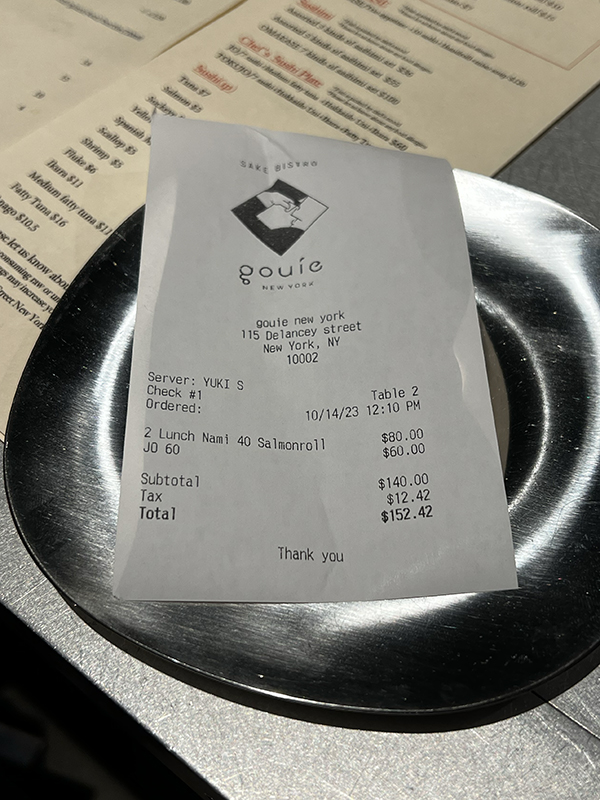 Gouie, Check Published October 31, 2023, 10:18 at 600 × 800 in Sushi at Gouie (New York, October 2023) ← Previous Next →