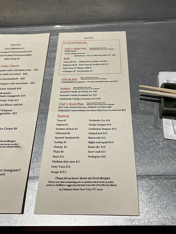 Gouie, Menu, Sushi Published October 31, 2023, 10:18 at 600 × 800 in Sushi at Gouie (New York, October 2023) ← Previous Next →