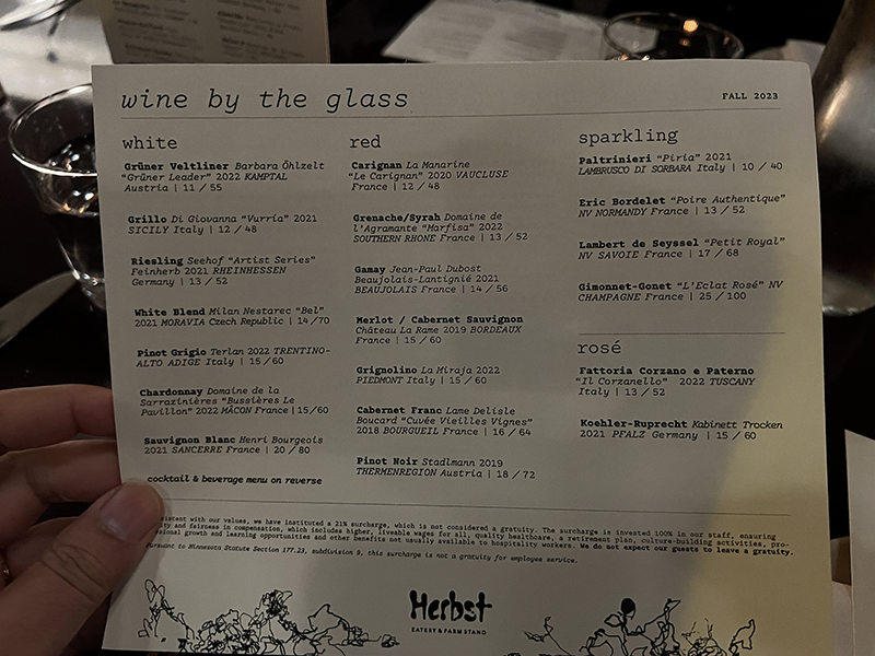 Herbst, Menu, Wine by the Glass Published November 20, 2023, 20:54 at 800 × 600 in Herbst (St. Paul, MN) ← Previous Next →