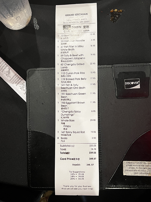 Grand Szechuan, Check Published December 26, 2023, 19:58 at 600 × 800 in Grand Szechuan, December 2023 (Bloomington, MN) ← Previous Next →