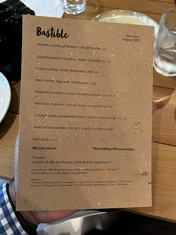 Bastible, Menu, closer Published December 28, 2023, 10:44 at 600 × 800 in Bastible (Dublin, Summer 2023) ← Previous Next →