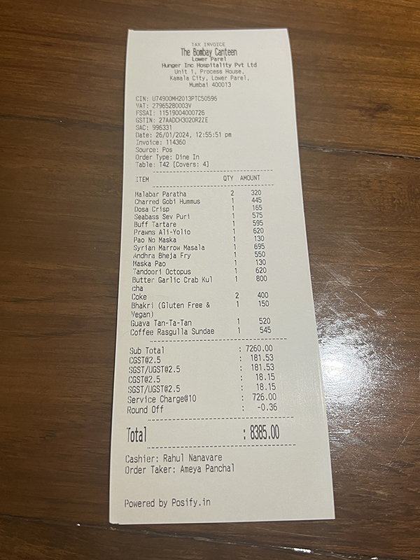 The Bombay Canteen, Lunch 1, Check Published February 21, 2024, 6:39 at 600 × 800 in The Bombay Canteen (Bombay, January 2024) ← Previous Next →