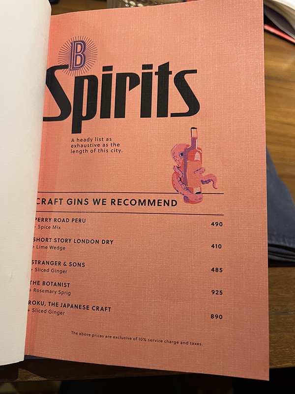 The Bombay Canteen, Spirits Published February 21, 2024, 6:33 at 600 × 800 in The Bombay Canteen (Bombay, January 2024) ← Previous Next →
