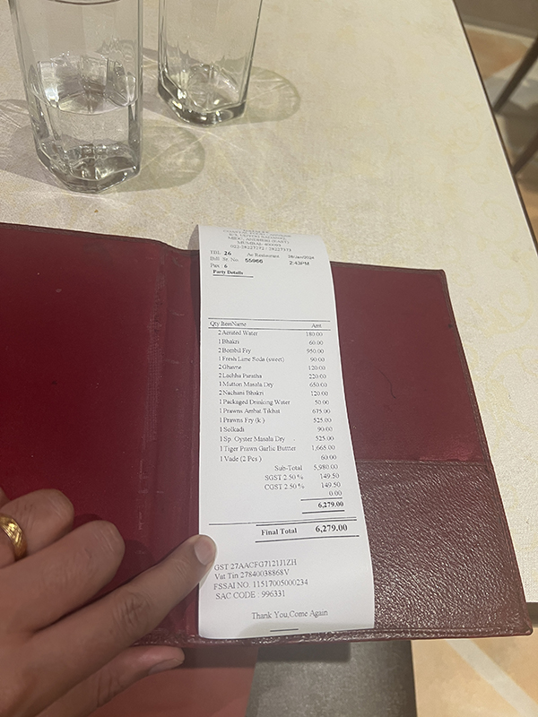 Gajalee, Check Published February 25, 2024, 7:08 at 600 × 800 in Gajalee, Andheri (Bombay, January 2024) Next →