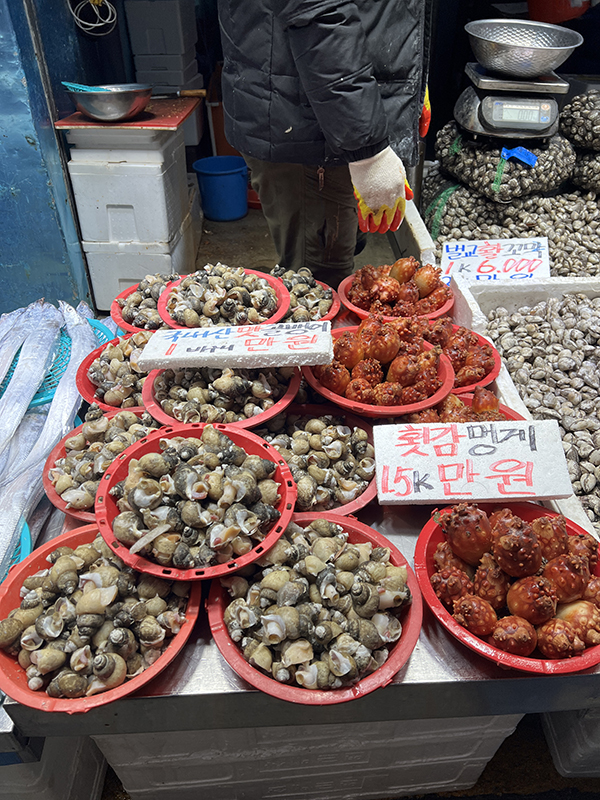 Cheongnyangni Market, Conch, Sea Squirts Published February 27, 2024, 6:30 at 600 × 800 in Eating and Shopping at Cheongnyangni Market (Seoul, February 2024) ← Previous Next →