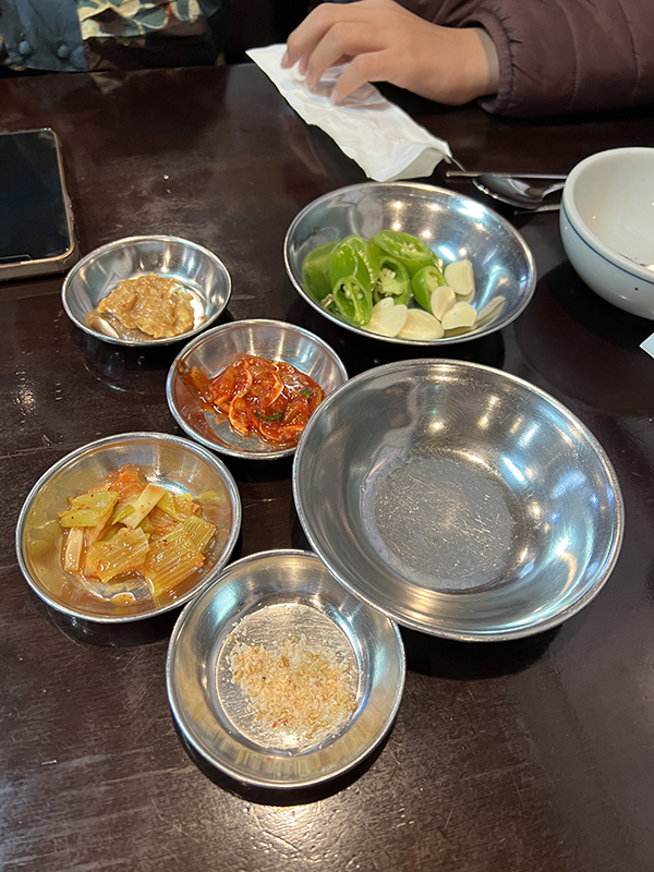 Gwanghwamun Gukbap, Banchan and condiments Published February 28, 2024, 20:50 at 600 × 800 in Gwanghwamun Gukbap (Seoul, February 2024) ← Previous Next →
