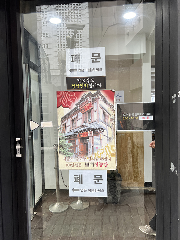 Imun Seolnongtang, Door, Hours Published March 5, 2024, 3:16 at 600 × 800 in Imun Seolnongtang (Seoul, February 2024) ← Previous Next →