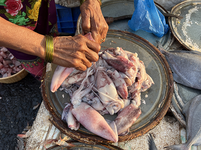 Sassoon Dock Fish Market, Squid peeling Published March 8, 2024, 8:02 at 800 × 600 in At the Sassoon Dock Fish Market (Bombay, January-February 2024) ← Previous Next →