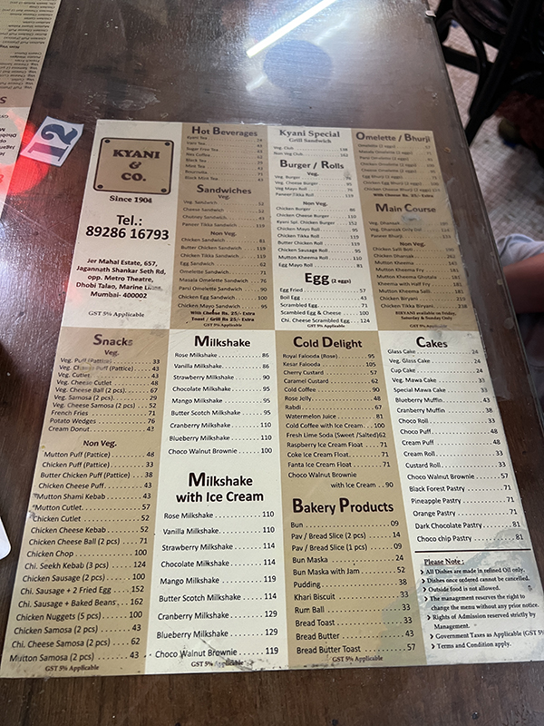 Bombay Casual, Kyani & Co. Menu Published March 24, 2024, 1:02 at 600 × 800 in Some Casual/Street Food (Bombay, Jan-Feb 2024) ← Previous Next →