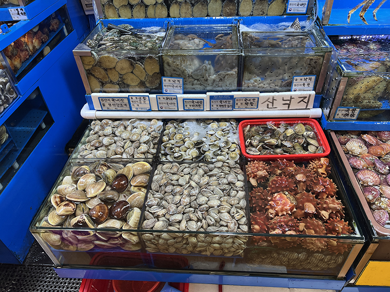 Noryangjin Fish Market, Abalone, clams, sea pineapple Published April 6, 2024, 22:11 at 800 × 600 in At Noryangjin Fish Market (Seoul, February 2024) ← Previous Next →