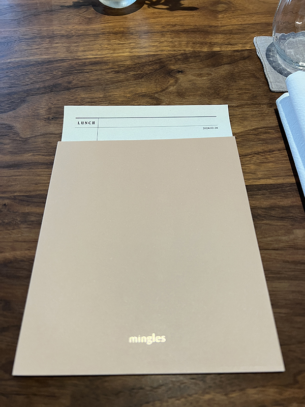 Mingles, Menu Published April 10, 2024, 21:31 at 600 × 800 in Mingles (Seoul, February 2024) ← Previous Next →
