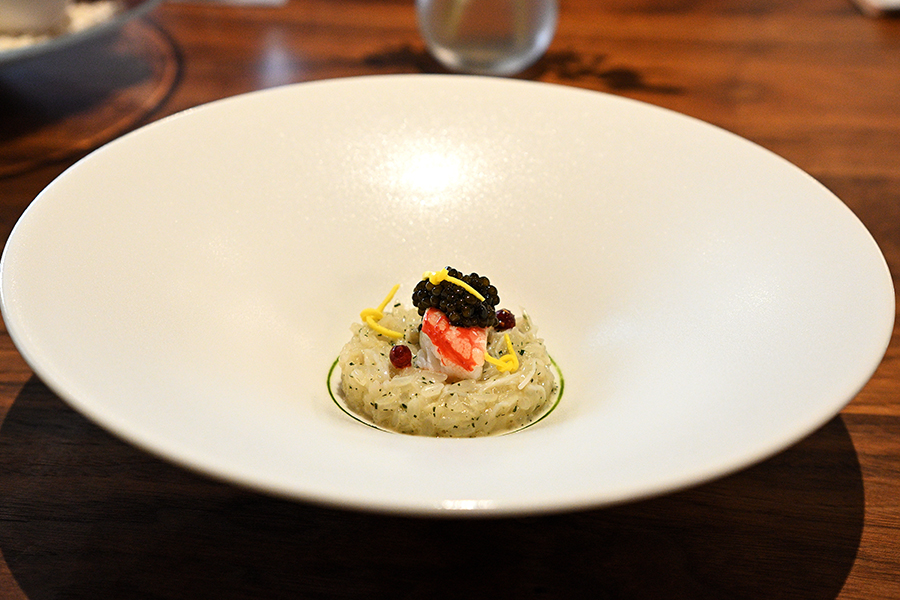 Mingles, Sixth Course, Sticky Rice Risotto, Crab, Tomato, Sesame Oil, Caviar Published April 10, 2024, 21:29 at 900 × 600 in Mingles (Seoul, February 2024) ← Previous Next →
