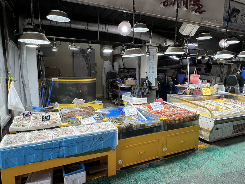 Mangwon Market, More formal seafood vendor Published May 10, 2024, 9:53 at 800 × 600 in In and Around Mangwon Market (Seoul, March 2024) ← Previous Next →