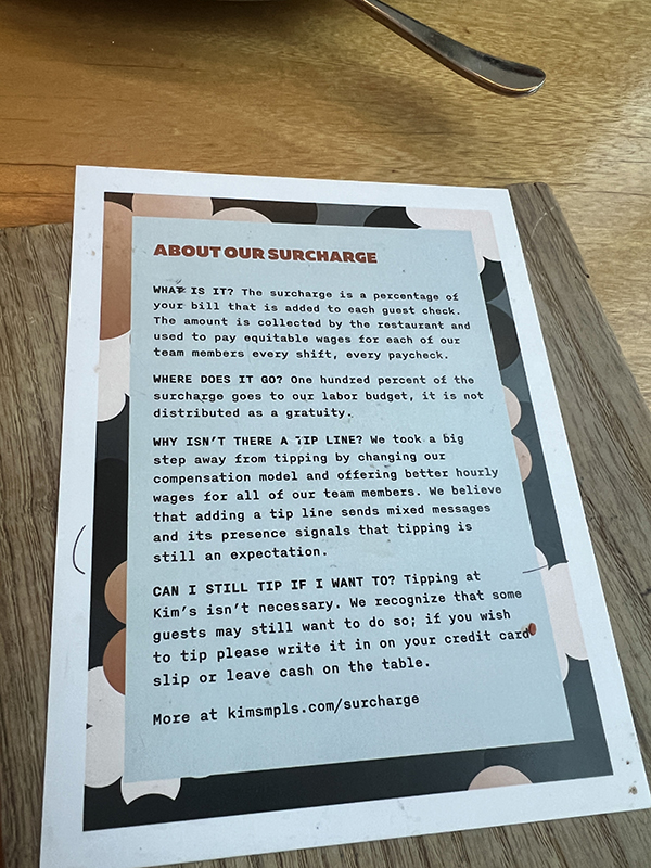 Kim’s, About the surcharge Published May 27, 2024, 10:38 at 600 × 800 in Kim’s (Minneapolis, MN) ← Previous Next →