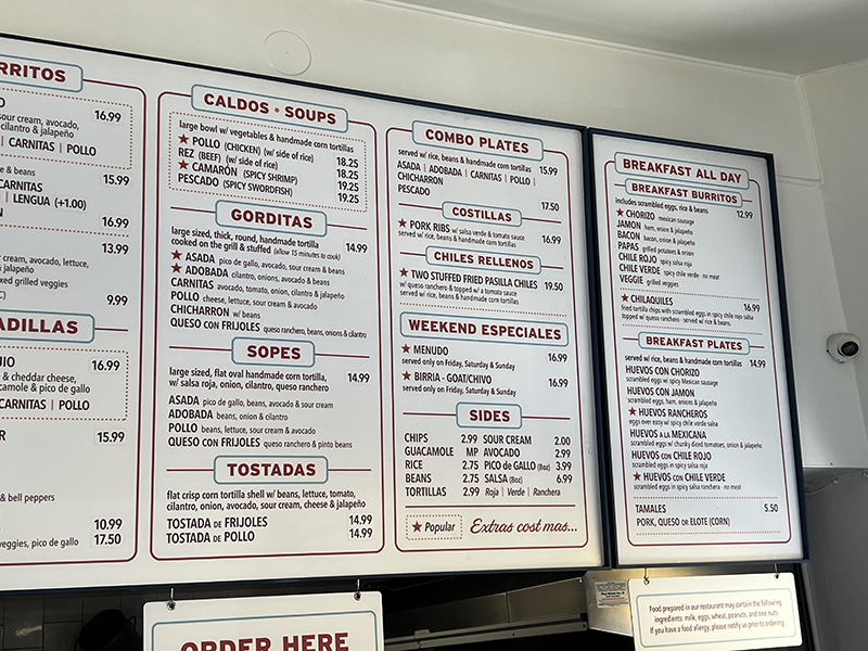Taqueria El Bajio, Posted Menu 2 Published July 11, 2024, 12:49 at 800 × 600 in Taqueria El Bajio (Santa Barbara, June 2024) ← Previous Next →