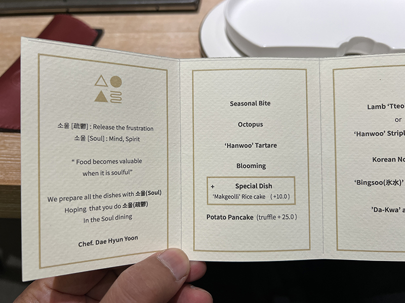 Soul Dining, Menu 1 Published July 13, 2024, 22:47 at 800 × 600 in Soul Dining (Seoul, March 2024) ← Previous Next →
