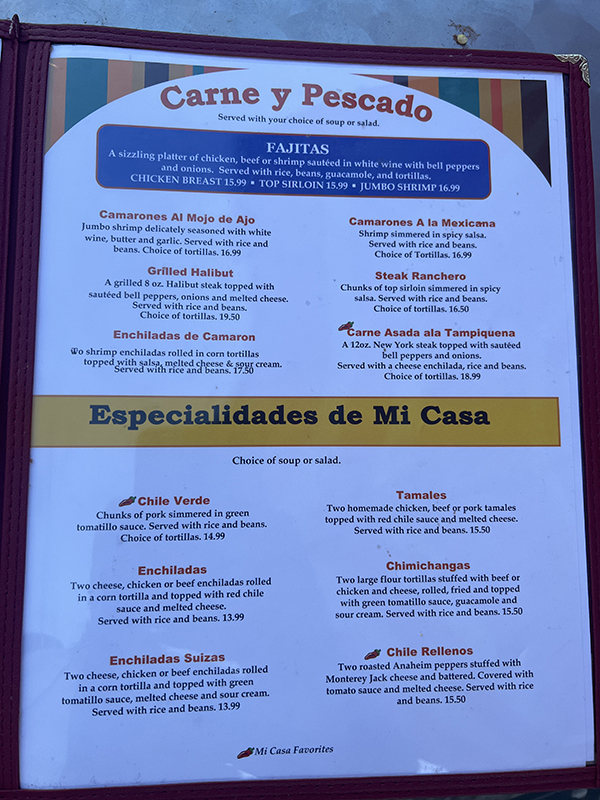 Mi Casa, Menu 4 Published July 27, 2024, 12:00 at 600 × 800 in Mi Casa (Morro Bay, June 2024) ← Previous Next →