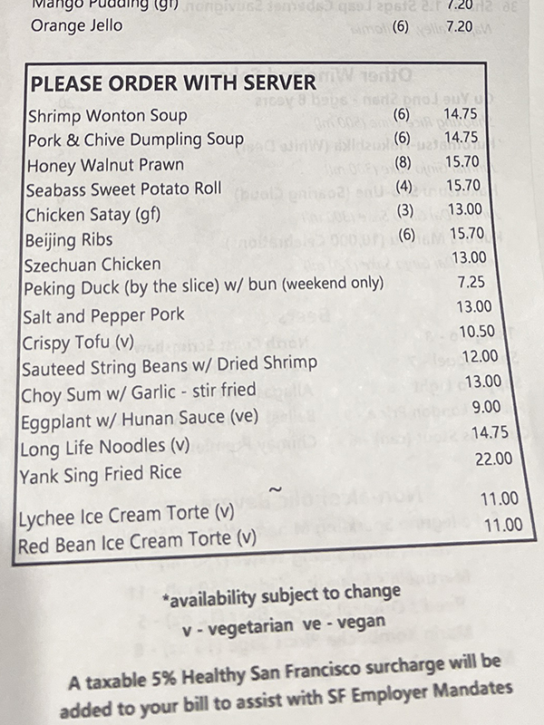 Yank Sing, Menu, Order with Server Published August 29, 2024, 10:24 at 600 × 800 in Yank Sing (San Francisco, June 2024) ← Previous Next →
