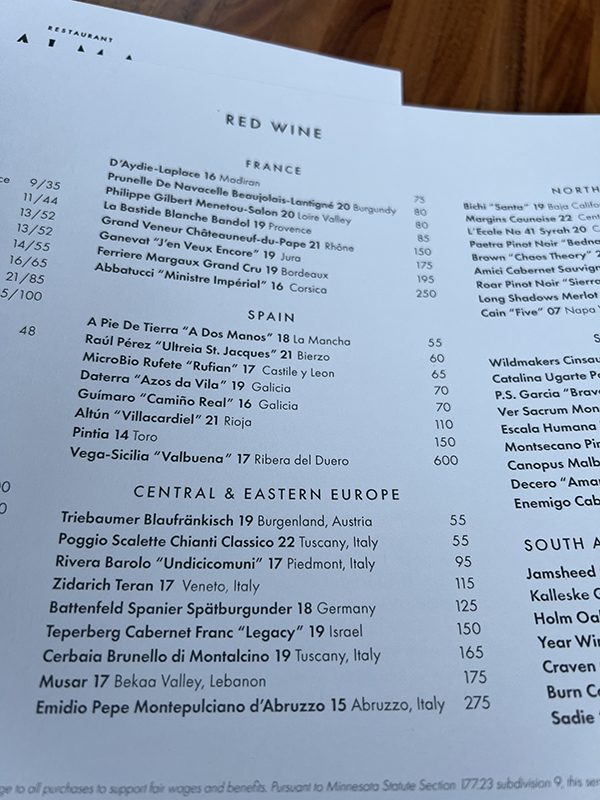 Alma, August 2024, Menu, Red Wine 2 Published September 10, 2024, 21:23 at 600 × 800 in Restaurant Alma XIII, Late Summer 2024 (Minneapolis) ← Previous Next →