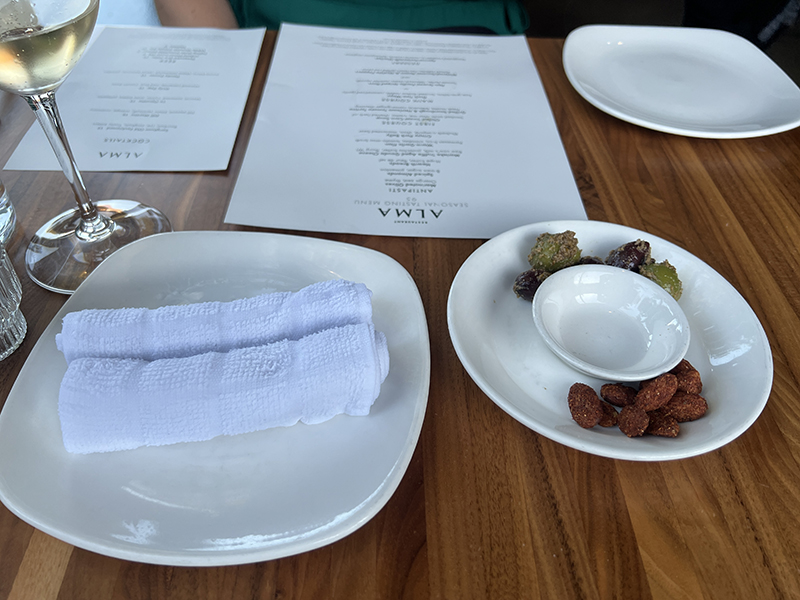 Alma, August 2024, Wipes and bites Published September 10, 2024, 21:23 at 800 × 600 in Restaurant Alma XIII, Late Summer 2024 (Minneapolis) ← Previous Next →