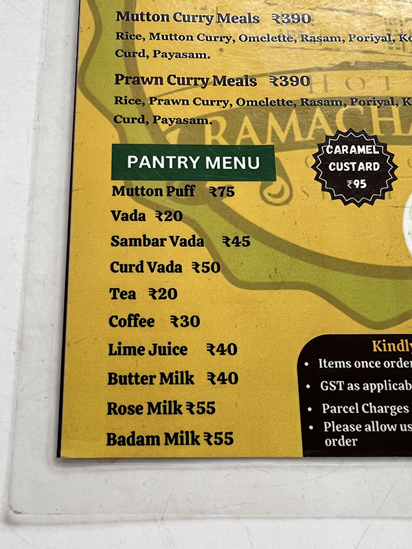 Hotel Ramachandra, Pantry Menu Published January 18, 2025, 10:20 at 600 × 800 in Hotel Ramachandra (Coonoor, Dec 2024) ← Previous Next →