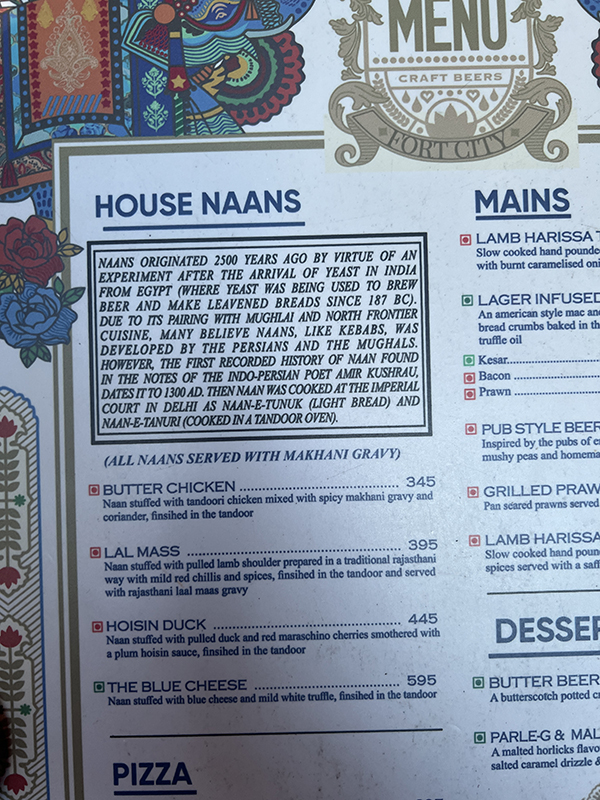 Fort City, Menu, House Naans Published March 27, 2025, 8:22 at 600 × 800 in Fort City (Delhi, March 2025) ← Previous Next →