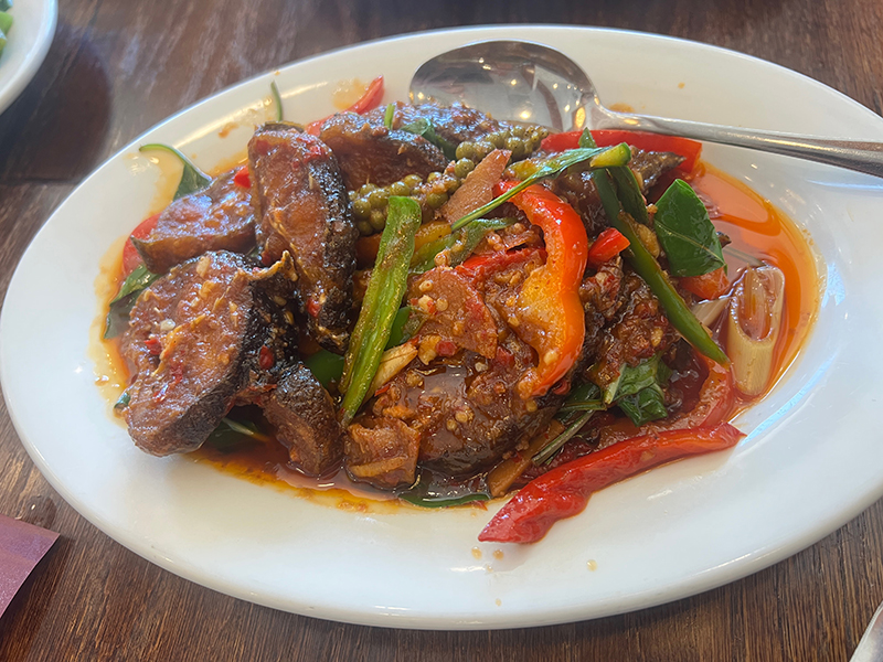Krungthep Thai, Stir-Fry Spicy Catfish Published April 8, 2025, 17:02 at 800 × 600 in Krungthep Thai V (St. Paul, MN) ← Previous