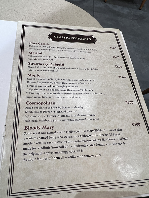 6 Ballygunge Place, Bar Menu, Cocktails Published April 19, 2025, 9:56 at 600 × 800 in 6 Ballygunge Place (Delhi, March 2025) ← Previous Next →