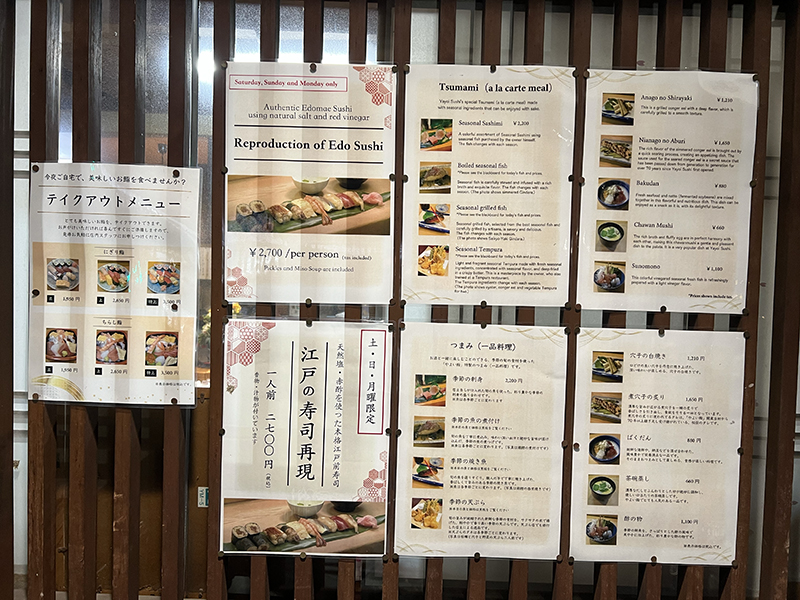 Yayoi Sushi, Posted menus Published July 10, 2025, 22:15 at 800 × 600 in Yayoi Sushi (Tokyo, June 2025) ← Previous Next →