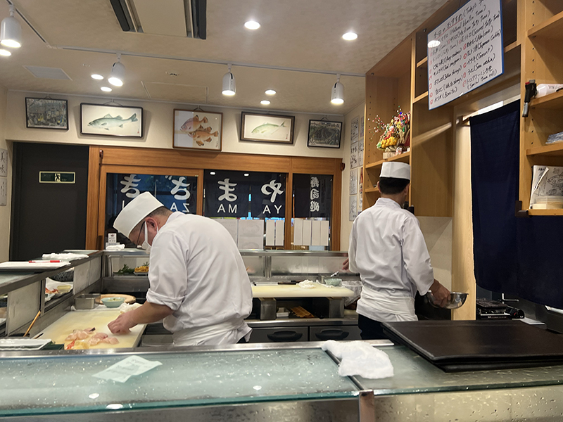 Dokoro Yamazaki, Chefs at work Published July 12, 2025, 11:48 at 800 × 600 in Breakfast Sushi at Toyosu Market I: Sushi Dokoro Yamazaki (Tokyo, June 2025) ← Previous Next →