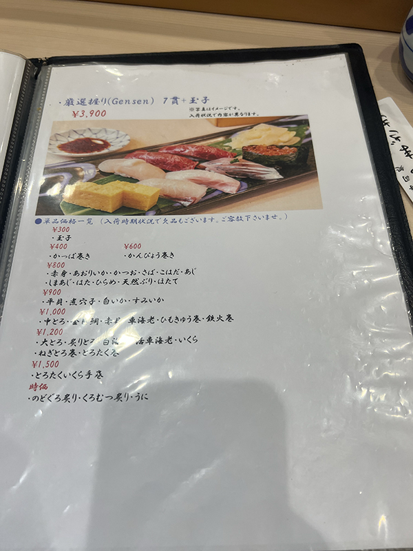Dokoro Yamazaki, Menu 3 Published July 12, 2025, 11:49 at 600 × 800 in Breakfast Sushi at Toyosu Market I: Sushi Dokoro Yamazaki (Tokyo, June 2025) ← Previous Next →