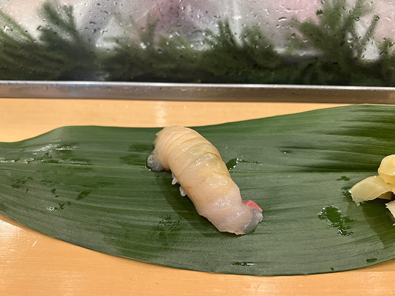 Dokoro Yamazaki, Shima Aji Published July 12, 2025, 11:48 at 800 × 600 in Breakfast Sushi at Toyosu Market I: Sushi Dokoro Yamazaki (Tokyo, June 2025) ← Previous Next →