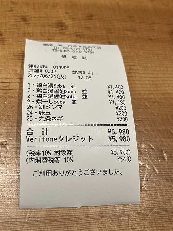Ginza Kagari Roppongi Hills, Ticket Published July 15, 2025, 21:24 at 600 × 800 in Ginza Kagari Roppongi Hills (Tokyo, June 2025) ← Previous Next →