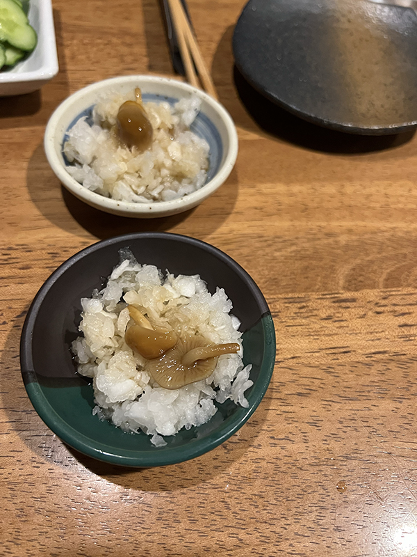 Hinai Stand, Shaved radish and nameko mushroom Published July 17, 2025, 22:48 at 600 × 800 in Hinai Stand (Tokyo, June 2025) ← Previous Next →
