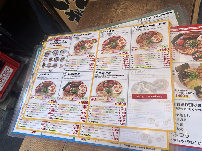 Kyushu Jangara, Akihabara, Menus for ordering Published August 3, 2025, 9:38 at 800 × 600 in Kyushu Jangara, Akihabara (Tokyo, June 2025) ← Previous Next →