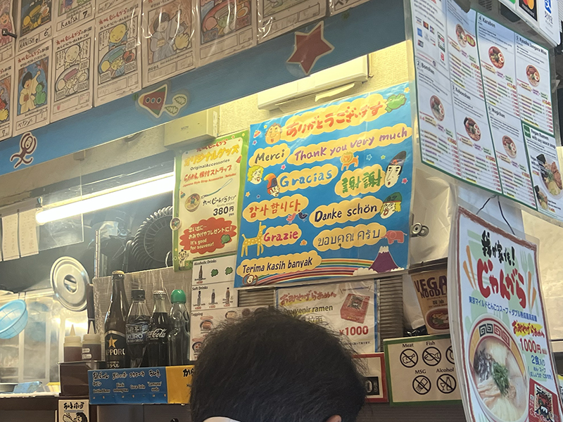 Kyushu Jangara, Akihabara, Multilingual thanks Published August 3, 2025, 9:38 at 800 × 600 in Kyushu Jangara, Akihabara (Tokyo, June 2025) ← Previous Next →
