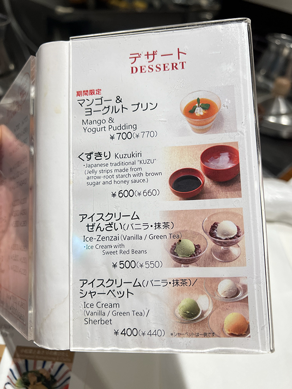 Shabusen, Menu, Dessert Published August 11, 2025, 23:49 at 600 × 800 in Shabusen (Tokyo, June 2025) ← Previous Next →