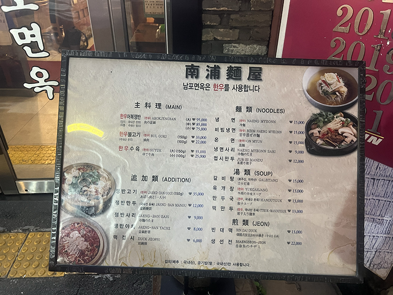 Nampo Myeonok, Posted menu Published September 5, 2025, 10:16 at 800 × 600 in Nampo Myeonok (Seoul, July 2025) ← Previous Next →