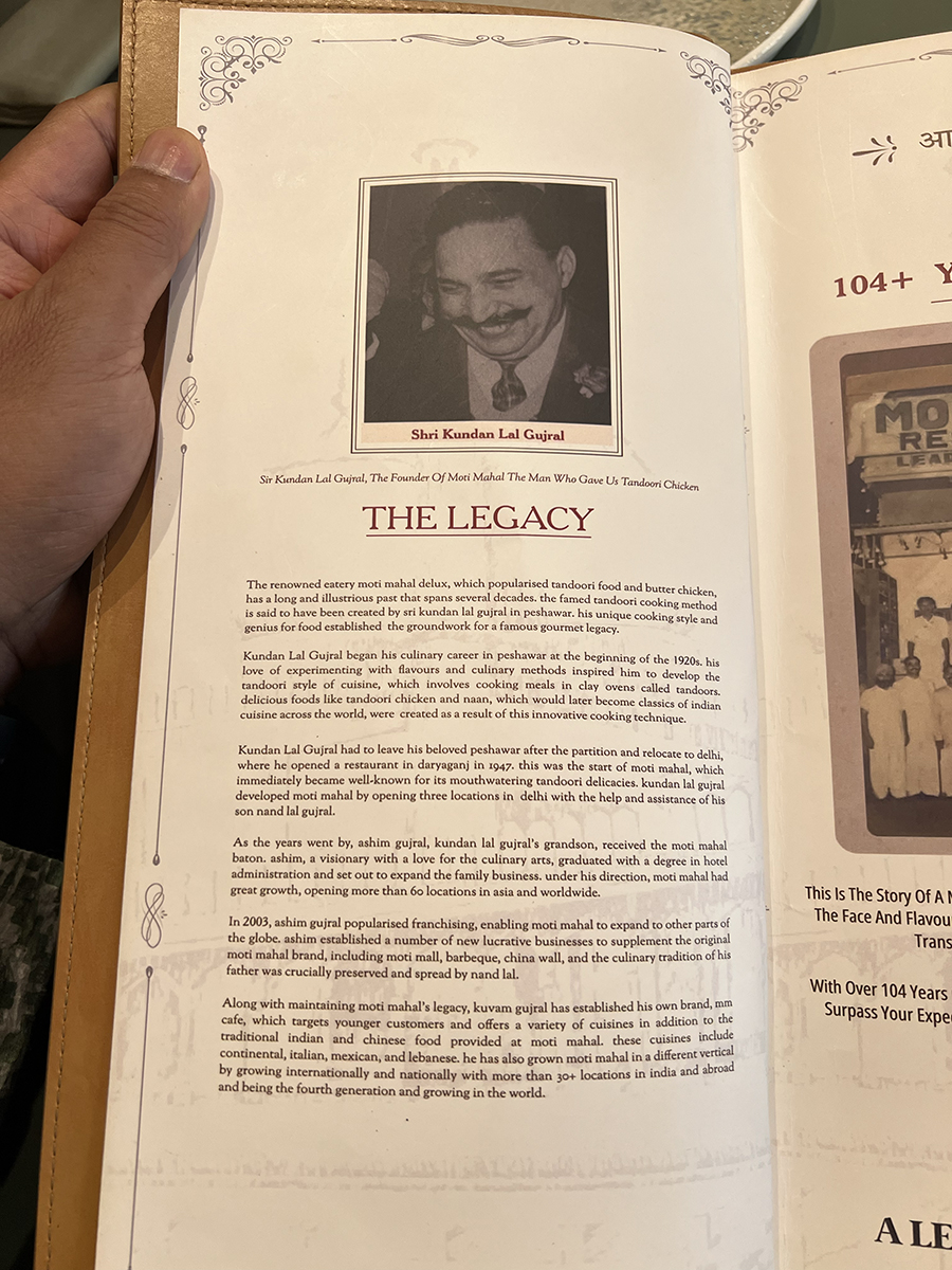 Moti Mahal, Menu, The Legacy Published September 10, 2025, 12:26 at 900 × 1200 in Moti Mahal (Gurgaon, July 2025) ← Previous Next →