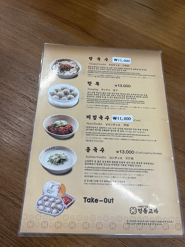 Myeongdong Kyoja, Menu at the table Published September 14, 2025, 0:39 at 600 × 800 in Myeongdong Kyoja (Seoul, July 2025) ← Previous Next →
